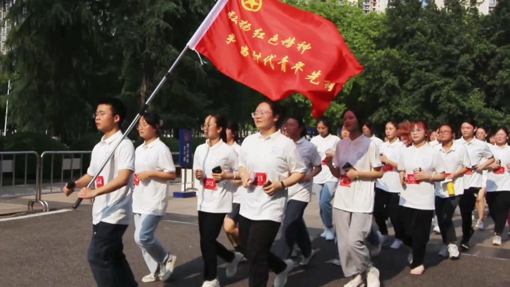 16时,伴随着发令枪响,在负责人的带领下,环校跑正式拉开了序幕。一面红旗,指引着成员们前进的方向;也正是“这张红旗”,带领一百多年前的“五四运动”,将青年推向了历史的舞台,一览青年对国家主权的争取,对思想自由的向往。本次比赛路程分为三个站点,第一节点,手持“五四运动”青年游街的明信片,在庄严国旗下打卡。同时也在校友会堂进行拍照留念,暗地许下对开创国家美好未来的誓言;第二节点,成员们拿着“三牛精神”一明信片,心中所想皆是祖国,进行拍照打卡。“弘扬红色精神,争当时代先锋”,烈焰红旗上的铮铮之语,伴随着“五四”精神的加持,即使是在烈日炎炎的夏日,也抵挡不住成员们坚持不懈的决心。怀着这股韧性与毅力,成员们最终返回党墙,进行最后的打卡纪念。百年五四,青年担当,师生们以奔跑者的昂扬姿态展示自己的青春风采,学习并发扬五四精神,充分展示欢乐麻将
