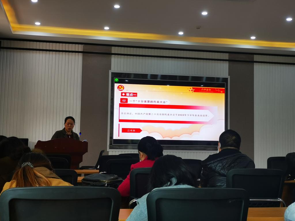 卢洪英书记通过为在场老师讲述党的十九届六中全会主题和精神,并对历届六中全会进行总结,号召全体教师尤其是教师党员,要加强行动自觉,学以致用、学用结合,要把学习宣传贯彻十九届六中全会精神同“我为群众办实事”结合起来,厚植为民情怀,同党史学习教育结合起来,准确把握全会精神实质,认真组织开展学习培训、宣传宣讲,强化理论研究阐释,做到全员参与、全体知晓。