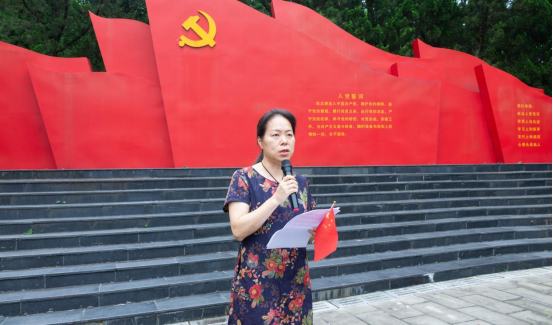 活动在雄浑激昂的《国际歌》中拉开序幕。全体党员面向宣誓墙,举起右拳,在毕业生党员代表程蕊同志的带领下庄重宣誓。举拳宣誓勇担当,青春无悔向前行。