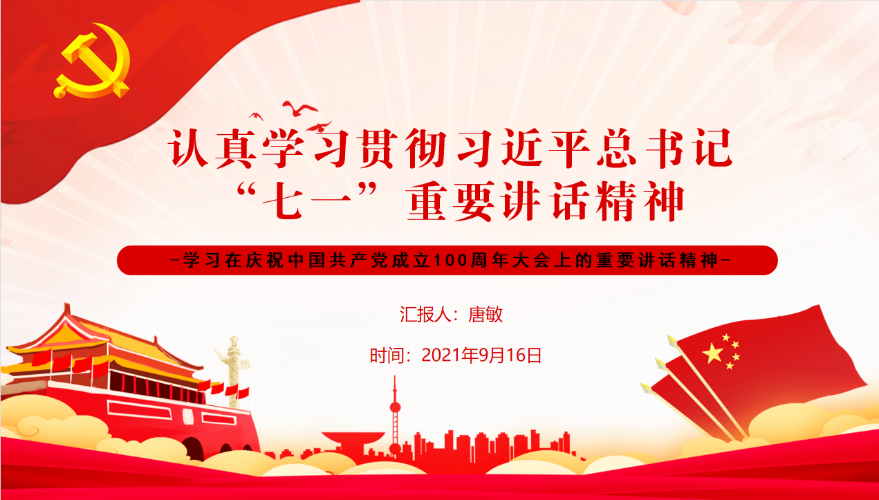 党课共分为四个章节,第一章,深入领会“七一”重要讲话的核心要义;第二章,深入领会“七一”重要讲话的重大意义;第三章,深入领会“七一”重要讲话的丰富内涵;第四章,深入学习“七一”重要讲话的实践要求。结合视频播放《百年峥嵘》等形式,系统回顾了中国共产党成立一百年来,团结带领全国各族人民开辟的伟大道路、创造的伟大事业、取得的伟大成就的峥嵘历史岁月,并通篇原文传达学习习近平总书记在庆祝中国共产党成立100周年大会上的重要讲话精神,号召参会的全体党员,尤其是学生党员,站在党的百年的新的起点上,要赓续红色血脉,传承革命精神,用自己的青春和奋斗创造属于我们的新的未来和明天。