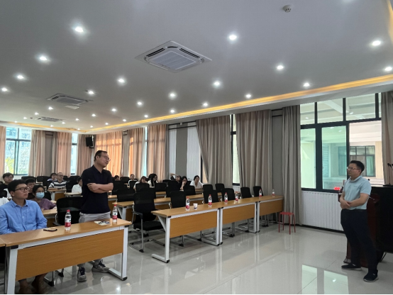 师生就钙钛矿单晶材料的制备以及应用方面向匡代彬教授提问,匡代彬教授结合自身的研究为老师和同学们做出了详细解答。