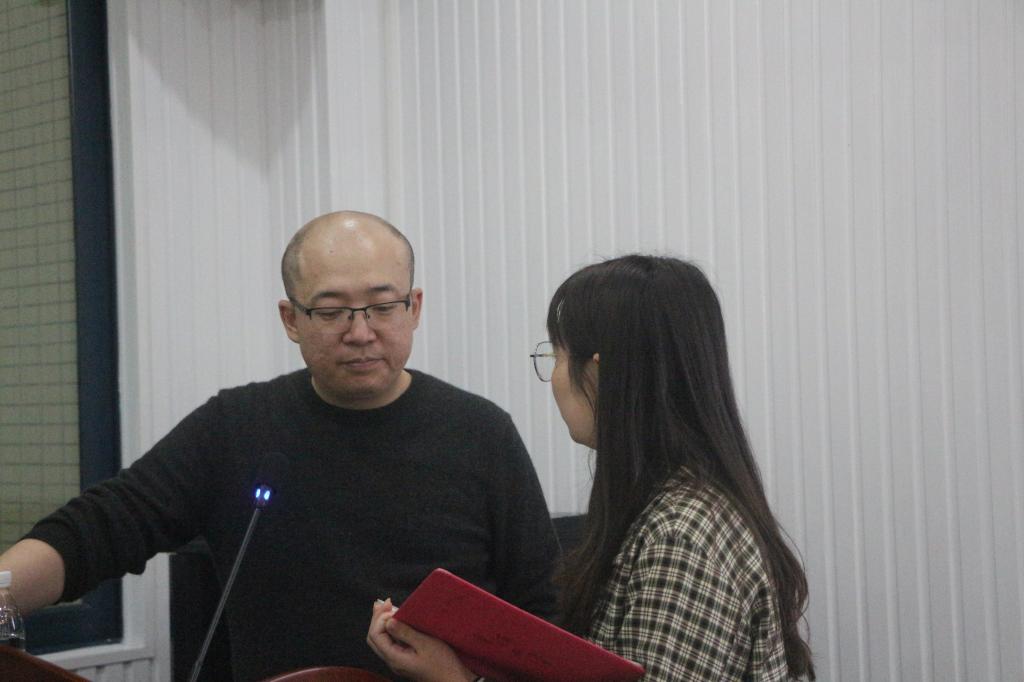 在以上知识的铺垫下,研究员从选择Cs/Sr的配比开始,由局部到整体对人工智能研究的原理、实验、评判、方法和研究思路流程做了详细的解读。在开展报告的同时,研究员利用相关图表、图片,加强同学们对人工智能研究的认识;通过形象的比喻,让复杂难懂的内容变得形象具体,报告现场不断传来阵阵欢笑声。在报告结束之后,还有同学积极向研究员请教问题,共同探讨人工智能机器的奥妙。