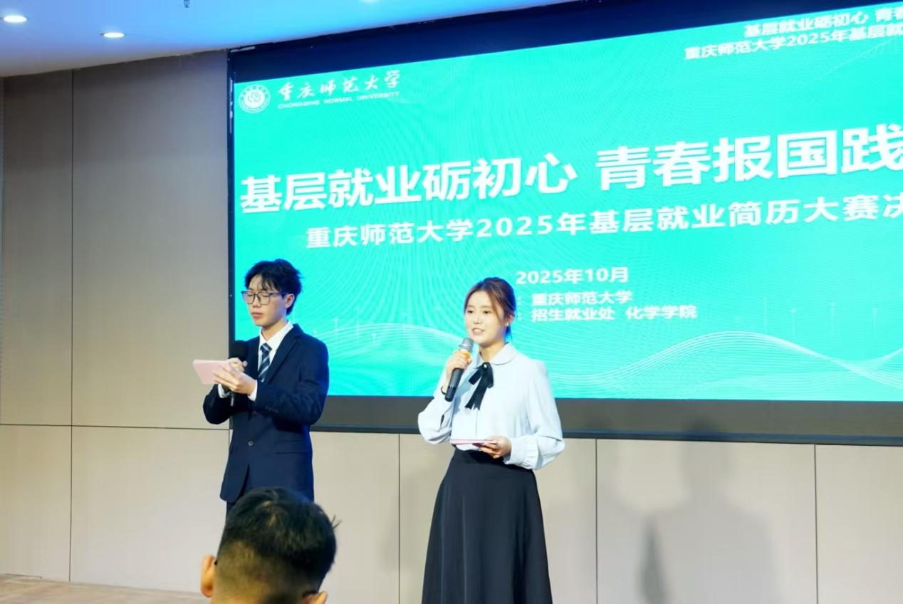 本次大赛以简历为载体,这不仅仅是对学子求职能力的锤炼,更是对“扎根基层、青春报国”初心的唤醒。重庆师范大学以简历为媒,让青年在打磨自我中锚定基层发展方向,将个人理想融入时代使命,为基层建设注入青春动能,让就业之路成为践行报国担当的起点。