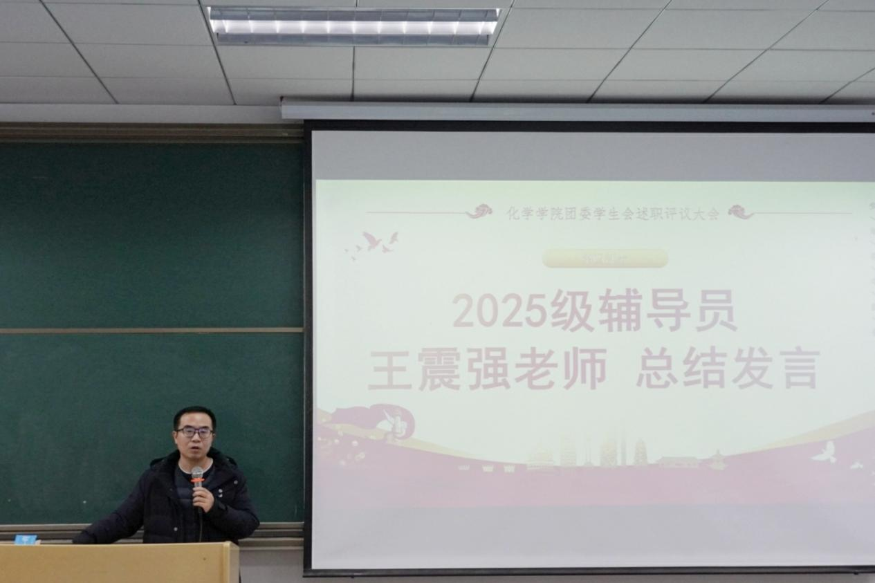 辅导员王震强老师在总结讲话中肯定了团学组织一学期来的辛勤工作与成果。他对未来工作提出三点期望:一要注重经验传承与系统梳理,提升工作规范化水平;二要着力打造具有化院特色的品牌活动,强化创新与宣传;三要加强部门联动与资源整合,形成工作合力,更好地调动广大同学参与。他勉励学生骨干持续提升服务能力,实现自我成长。