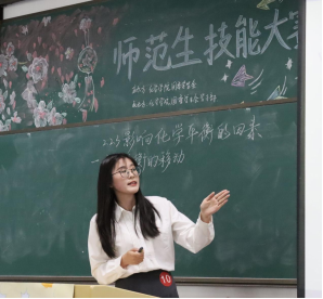 在即席讲演的比赛环节,选手所抽取的问题包括如何进行化学教学,增加学生学习兴趣;怎样才是一名合格的化学老师;以及如何评价学生,提升学生的综合素质培育等方面。模拟上课的比赛主题涵盖了化学平衡、周期律、乙醇乙酸三个部分,选手们根据教学设计进行引课和授课,通过实验展示,由浅入深,全方位展示教学技能。