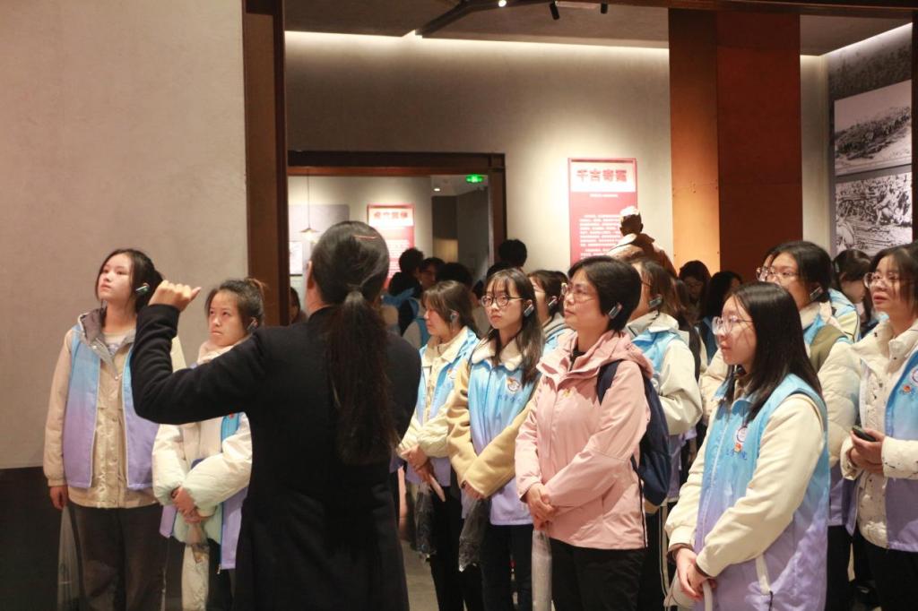 沿着壮志路和凌云路,同学们在讲解员的带领下进入歌乐山革命纪念馆,重温革命先烈们的英勇事迹,走近党的光辉历史,切实感受红岩精神。受尽酷刑顽强不屈的巾帼英雄江竹筠、中国年龄最小的革命烈士“小萝卜头”宋振中、“在烈火和热血中得到永生”的叶挺将军和崇尚科学、捍卫民主的数理学家周均时先生……馆内的一幅幅史图生动讲述白公馆、渣滓洞革命先烈的斗争事迹,每一件展陈的物件内容引人久久驻足,心生震撼。
