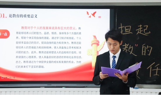 活动伊始,主持人在阐述教育对个人和社会的重要意义后,列举了张桂梅和我校何代平老师的的先进事迹与贡献,鼓励青年学生向榜样看齐,凝聚奋斗力量。同时还观看了重庆师范大学第24届研究生支教团赴重庆市城口县支教工作开展情况的视频。他们接过时代的接力棒,秉承着重师校训,铭记着重师精神,践行着重师校风,接力支教、育人育心,不断为服务脱贫攻坚、乡村振兴和基础教育发展等贡献重师力量。他们用自己的的热忱诠释青春的活力,以孜孜以求的态度回应时代的召唤。