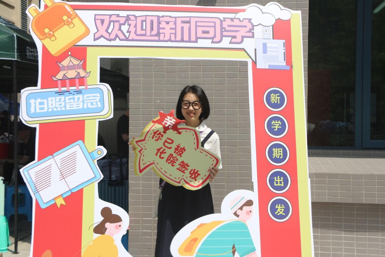 的关怀。不少同学也在迎新海报下拍照留念,在自己的重师记忆里留下第一抹亮色。