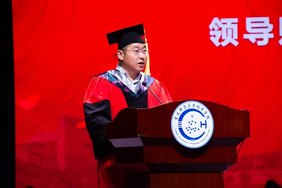 随即,师范生代表王倩发言,她从高考谈到现在,表达了对母校的感情。四年里,她“朝去教学楼,午住图书馆。夜归宿舍楼”,获得一等奖学金和省级、国家级师范生技能大赛奖项,目前也成功入职重庆市璧山中学校。非师范生代表李茹欣提到了她在学生工作岗位上挥洒激情,锻炼自我,在各种社团活动和专业竞赛中提升综合素质。在实验室和实习基地里提升专业技能,拓展自身事业。这些一件件经历的事,一本本看过的书变成了一条长长的路,送她走向明媚的远方,她成功保研到南开大学。研究生毕业生代表吴世阅强调人生是一场永无止境的修行,我们还要守护好自己的心田,在立业之后为天地立心,为生民立命。处理好理想与现实之间的关系,心怀仁爱。