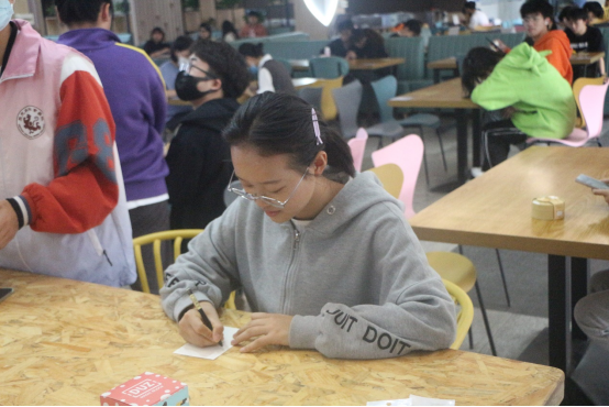 首先,志愿者先为同学们提供了手写明信片。在志愿者的引导下,在场的同学们充分发挥自主创造性和想象力,以自己独特的想法写出了自己对二十大胜利召开的祝福寄语和对新学期的希冀。其次,明信片写好后,将投入漂流箱中,此时同学们会得到一个号码,扫描场地桌上的二维码并填写自己的欢乐麻将