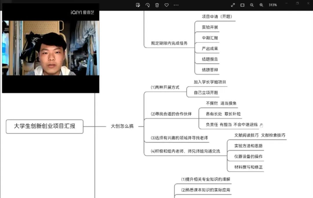 优秀学生,以“学长学姐说”的形式,为全体参与学生介绍自己的项目经验。2022届毕业生卢思帆,结合自身本科期间的科研经历出发,从“大创是什么”,“大创如何搞”,“大创有啥用”三个方面进行了大学生创新创业项目的指导。2019级李莹莹、杨婷学姐分别阐述了自己对大创项目的理解并分享了各自的创新创业故事,2020级欧阳聪睿学姐则通过自己参加的比赛来让大学生更进一步的了解“互联网+”。同时,三位学姐也针对同学们提出的问题,给出了自己的宝贵经验和心得体会。