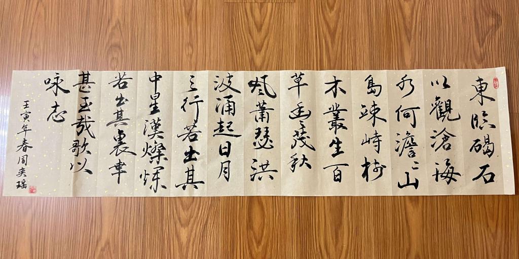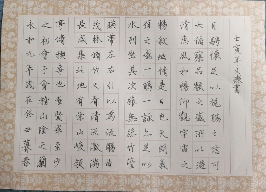 阐释书法精神,传承文化精髓。一张张书法,描绘出兰亭气韵,笔墨之美;“日月之行,若出其中;星汉灿烂,若出其里”,书写下青春的朝气蓬勃与豪言壮志。