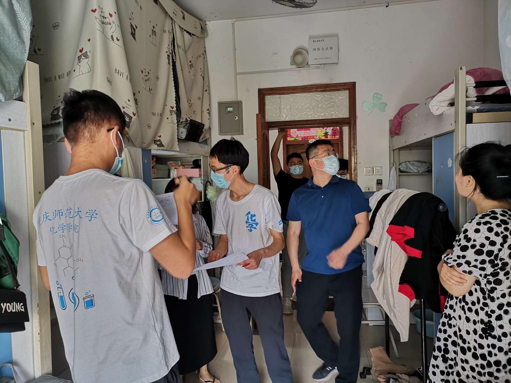 党委书记卢洪英,副院长刘玺,党委副书记蒋红,副院长王燚以及全体辅导员、班主任、研究生班主任走访学生寝室,提醒同学们疫情之下不能大意,一定要遵守学校欢乐麻将