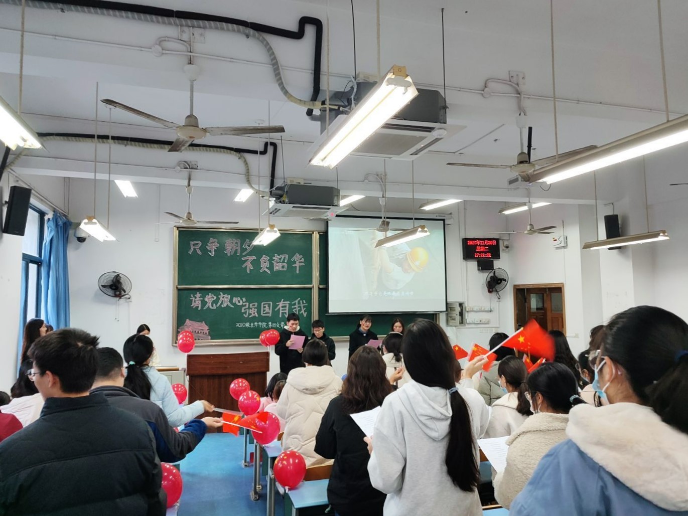 2020级化学(师范)四支部于2021年11月30日在弘德楼15403开展了以“只争朝夕,不负韶华,请党放心,强国有我”为主题的十佳团日活动。