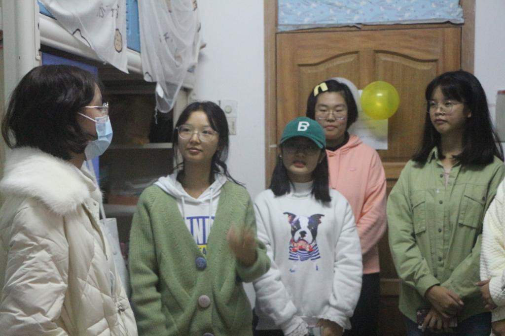 的党员同学们于2021年11月4日晚上九点半在男生寝室和风苑和女生寝室惠风苑针对21级新同学们开展“党员1+1之心连心,红色精神伴我行”活动。