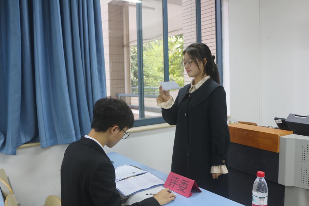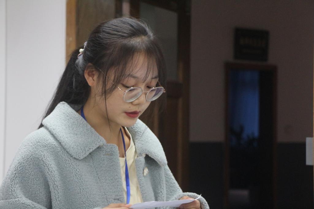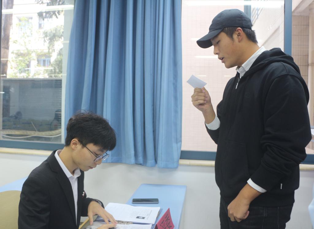 本次比赛主要分为自我介绍、语言能力考察两个环节。活动伊始,由主持人刘青松向参赛选手介绍比赛规则,并宣布比赛正式开始。紧接着各参赛选手依次排队到评委处进行自我展示,并朗读一段优美的文字。