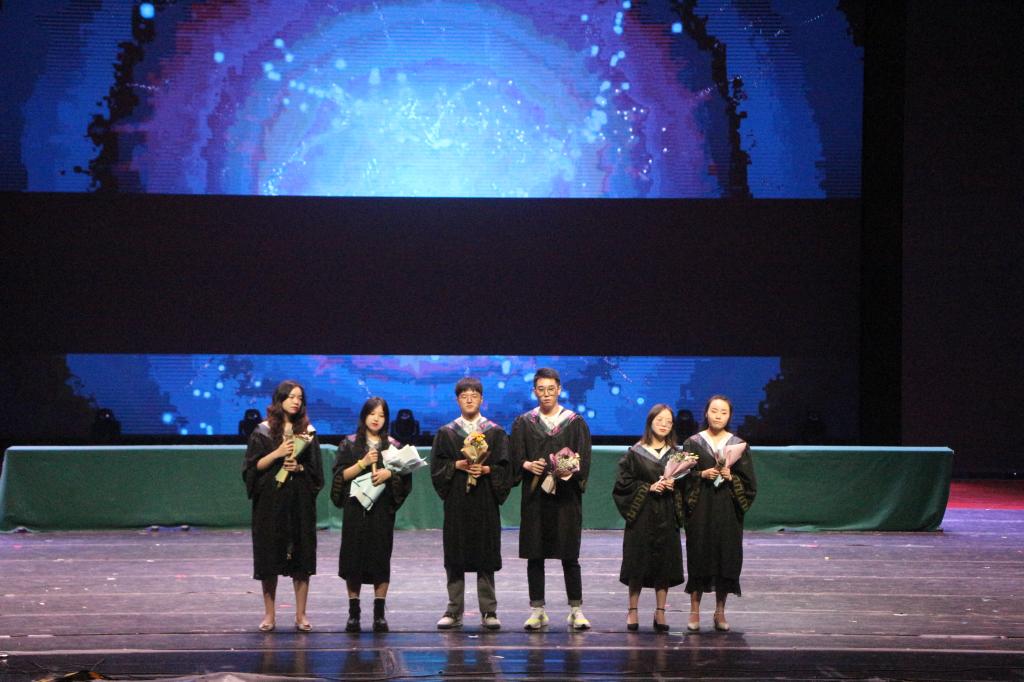 领导于主席台前就坐。庄严肃穆的国歌声响起,在场的老师和同学全体起立,奏唱国歌。接着,研究生代表闵远洪同学上台发言,“落红不是无情物,化作春泥更护花”,老师的指导和帮助,父母的关心和爱护,同学的团结与互助,让化院学子带着梦想,再次出发。本科生代表谭鑫同学说:“毕业不是代表结束,而是欢呼的开始,不是庆祝完成,而是宣告继续向前。”徐玉萍提到,无论鱼翔浅底,还是鹰击长空,我们都要自强不息,不断进步。