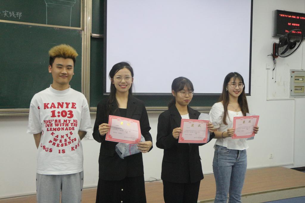 他们精彩详细的讲解向我们展示了自己的师范生技能以及独有的讲课风格。同时每位选手讲题结束后,评委也会根据选手表现,依照比赛规则进行打分,并在每组选手讲题结束后公布上一组选手得分情况,比赛现场气氛紧张而又刺激。经过了接近两小时的激烈角逐后,活动接近尾声,所有参赛选手的讲题展示结束。三位评委对参赛选手们的表现表示肯定,也细心地针对每位选手的问题提出具体的改正意见。最后,为获奖选手颁发奖状并合影留念,本次讲题比赛圆满结束!