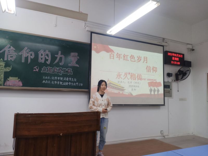 团委学生会主办,学习部承办的演讲比赛——“信仰的力量”于弘德楼13101教室举办。本次比赛的评委有主席团主席徐荣蔚、副书记慕雨窈和王鸥。
