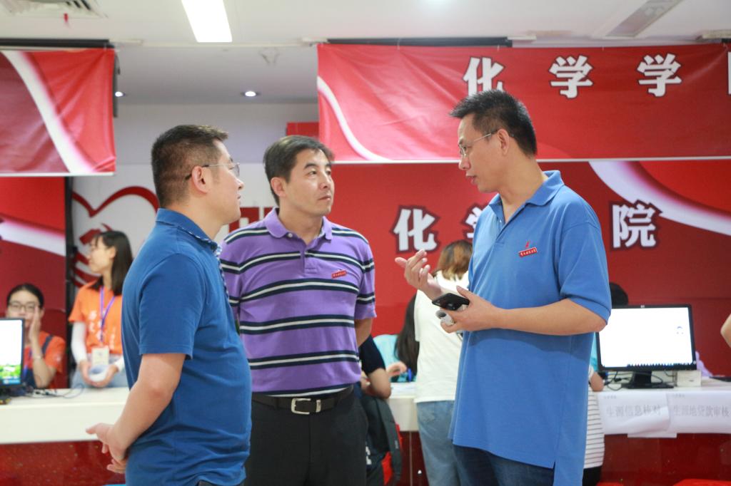 党委书记唐敏,院长付文升、党委副书记卢洪英、副院长刘玺以及各年级辅导员一早来到一站式服务平台,为到场的新生和家长答疑解惑。