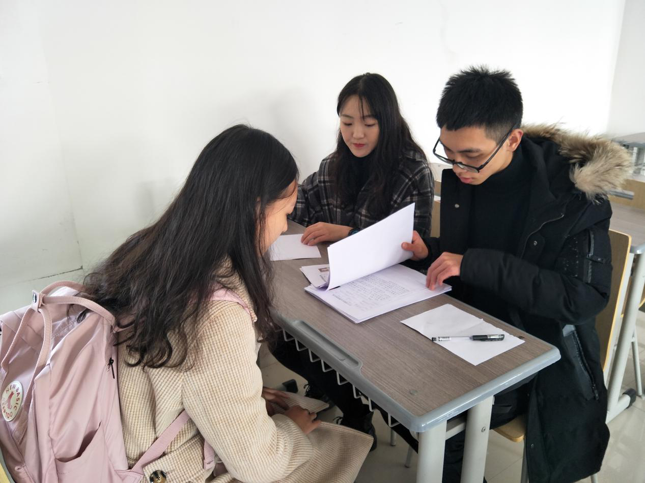 本次面试秉着公平公正的原则,以二对一的形式进行面试。未面试者在座位上安静等待。