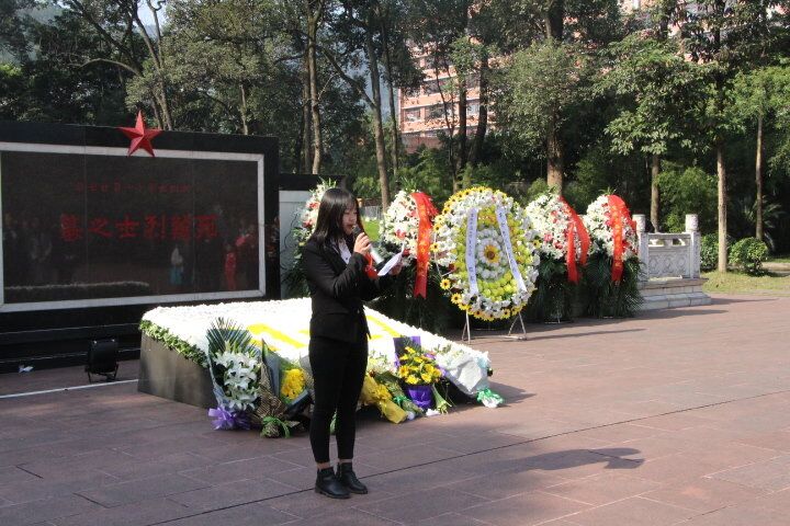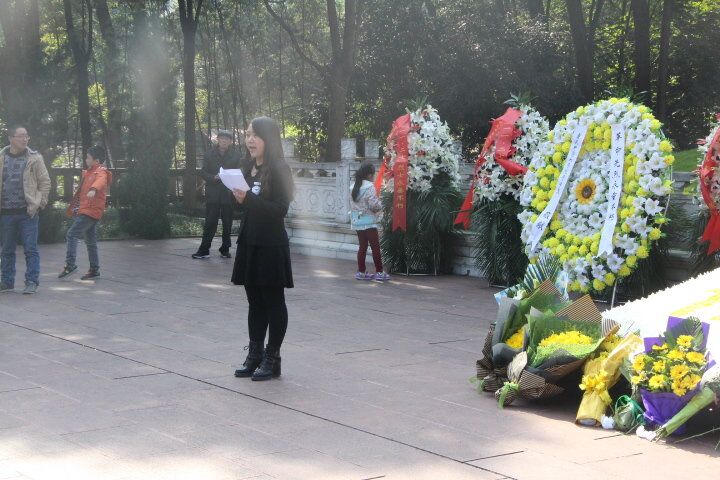 在马列部和组织部的带领下,大家于11月27日上午11:30准时从重庆师范大学宣誓墙出发乘坐轻轨前往重庆烈士墓。在阳光的照耀下,烈士墓前的石碑旗帜显得格外耀眼。六十七年前的11月27日,“他们”因信仰而奉献自己;六十年后的今天,我们因他们而站在这里。大家集合完毕后,一起走进神圣庄严的地方——烈士墓。首先,由组织部部长陈开春学姐主持宣布活动正式开始。在支持人简述白公馆大屠杀之后,大家正对烈士墓三鞠躬,紧而来之,大家默哀一分钟将庄重的气氛推至顶峰。随后,马列部部长王俊波和梦想公益协会会长王平代表学生献花,党员王苗慧代表讲话,学生代表陈昱州带领宣誓,全体人员献花,向先烈们传达我们的敬仰情怀,不忘初心,铭记历史。最后,全体人员在纪念碑前留影怀念,并参观博物馆,感受先烈们的革命情怀。
