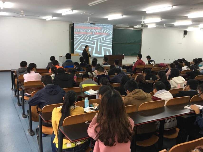 下午十六点三十分讲座正式开始。卢洪英老师首先以于沙,雨果的名言作为开场,引入理想这个主题。接着连续几个问题更是直指人心,让同学们不禁反省自己现在的大学生活。卢洪英老师谈完了理想紧接着又通过给同学们讲了一个小故事,来提醒同学们要孝顺父母。又以一个故事来告诫同学们不要拖延。卢洪英老师的言语亲切和蔼,语言幽默风趣,参与讲座的同学都听得津津有味。最后卢洪英老师祝愿同学们度过一个值得骄傲的大学四年生活。