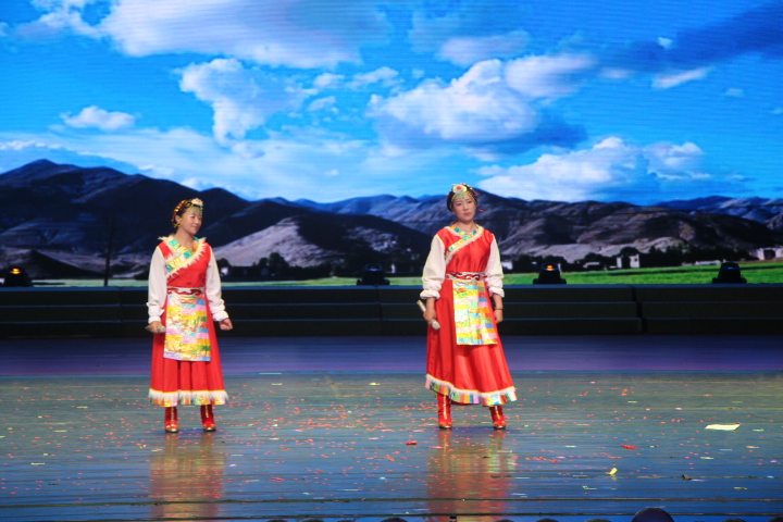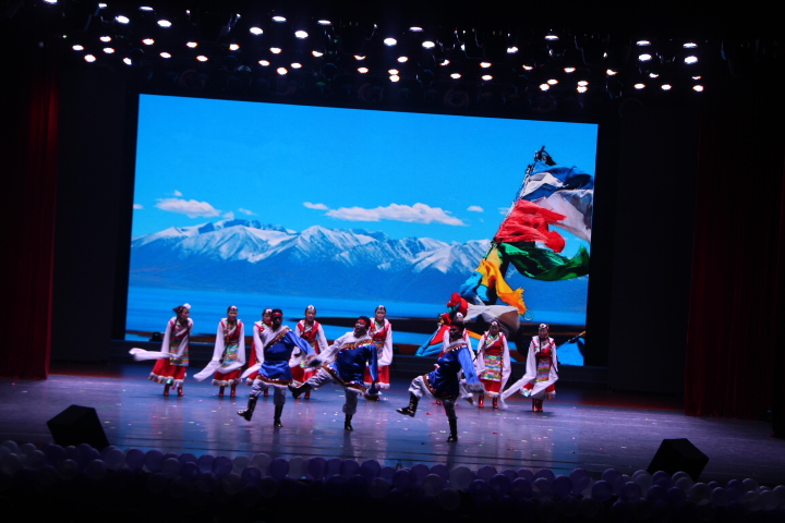 党总支书记胡先成老师献唱《鸿雁》一曲,以此向专程来此的西藏国培教师致以真诚的感谢与问候。晚会中,充满古典气息的舞蹈加伴唱《南山南》以及舞蹈《青花瓷》,将中国古典风雅展现的淋漓尽致,一姿一态无不彰显大国风范;《欢乐逗逗逗》、《大学那些事儿》以及《城里城外一家人》等小品以其别具一格的创意乐翻全场;晚会中所穿插的每一个藏族舞蹈与歌曲都让观众们感受到了藏区人民那最质朴真诚的心灵;晚会开始过半,欢乐麻将