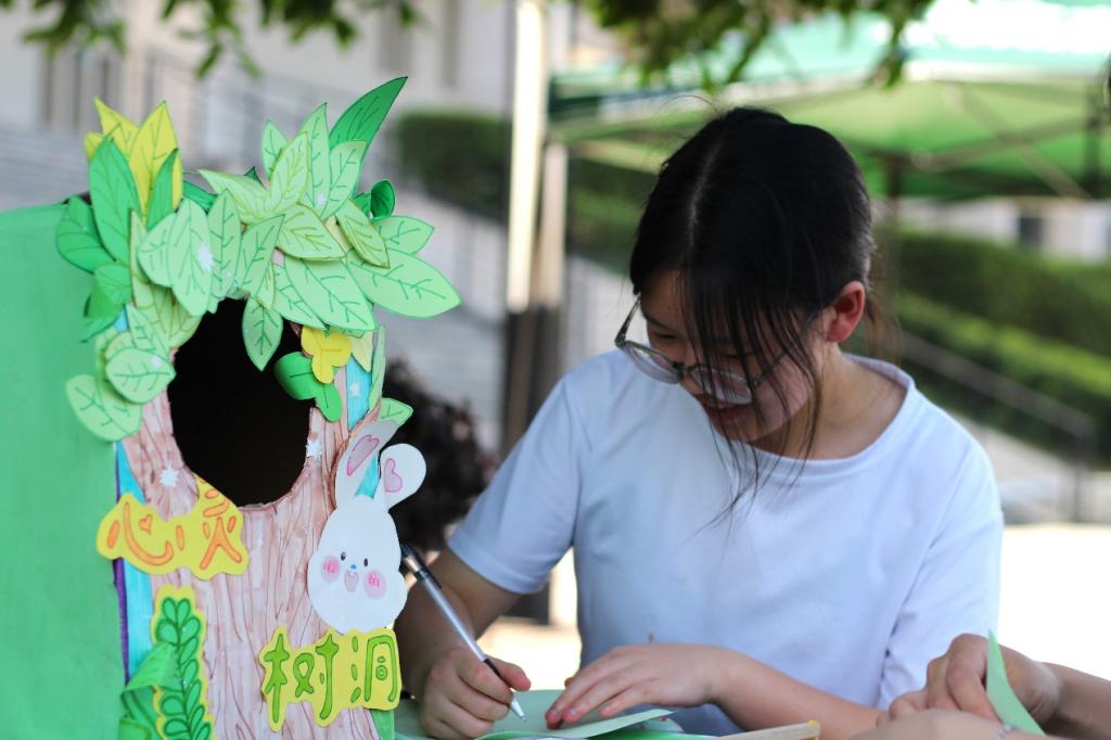 再往前踏上几步,便进入本次活动的尾声——心灵树洞。少年的成长之路难免不会遇到挫折,也同时伴随着烦恼和痛苦。而参与同学可以将压抑在心中的烦恼和心事用心书写在工作人员提供的精美卡片上,投入信箱中,通过这种方式将烦恼丢弃。