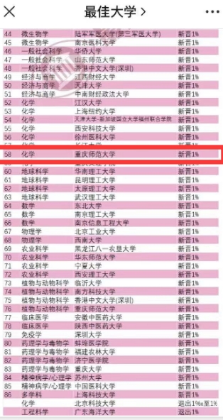 化学学科新晋升全球前1%,重庆师范大学共有2个学科进入,标志着我校学科建设取得了突破性进展。