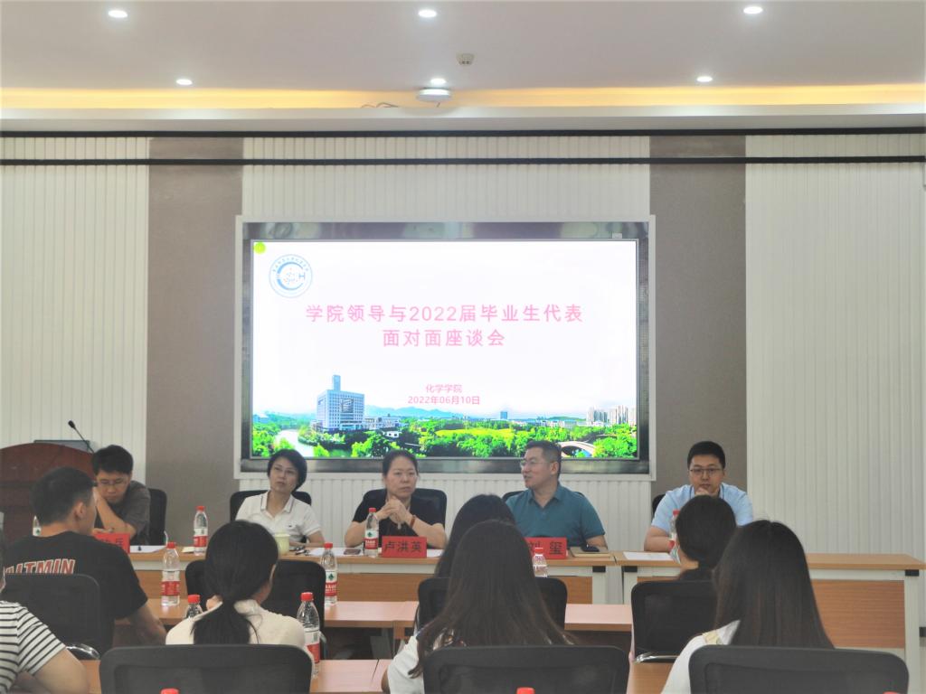 贯彻学生工作大会精神,进一步提高人才培养质量,全面服务学生发展,6月10日上午,化学欢乐麻将 在求是楼202会议室召开院领导与毕业生代表面对面座谈会。党委书记卢洪英、院长(主持工作)刘玺、党委副书记蒋红副院长王燚、院长助理周功兵出席会议,来自三个专业的20余名毕业生代表参加会议会议由党委副书记蒋红主持
