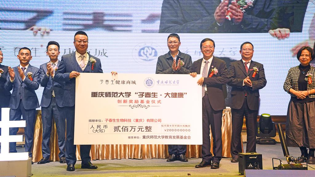 子春生董事长樊凯先生在讲话中说,公司捐赠成立的重庆师范大学“子春生大健康创新奖励基金”,旨在支持贵校优秀师生创新能力的培养,致力于健康领域产品的创新和研发。同时体现我公司在企业发展过程中应有的社会责任与担当。最后期待与贵校开展进一步深化合作,促进优秀科研成果的技术转化,我司将进一步加大在大健康产品研发中的投入,进一步优化和提升我司产品品质。配套签署的《子春生大健康创新奖励基金管理办法》中规定,该基金每年奖励2-5名在基于生物活性物质的有开拓性、创新性之专利(公开或授权)或者大健康产品(拟上市或已上市销售)的学者和学生,其中不低于50%奖励给在校本科生和研究生。