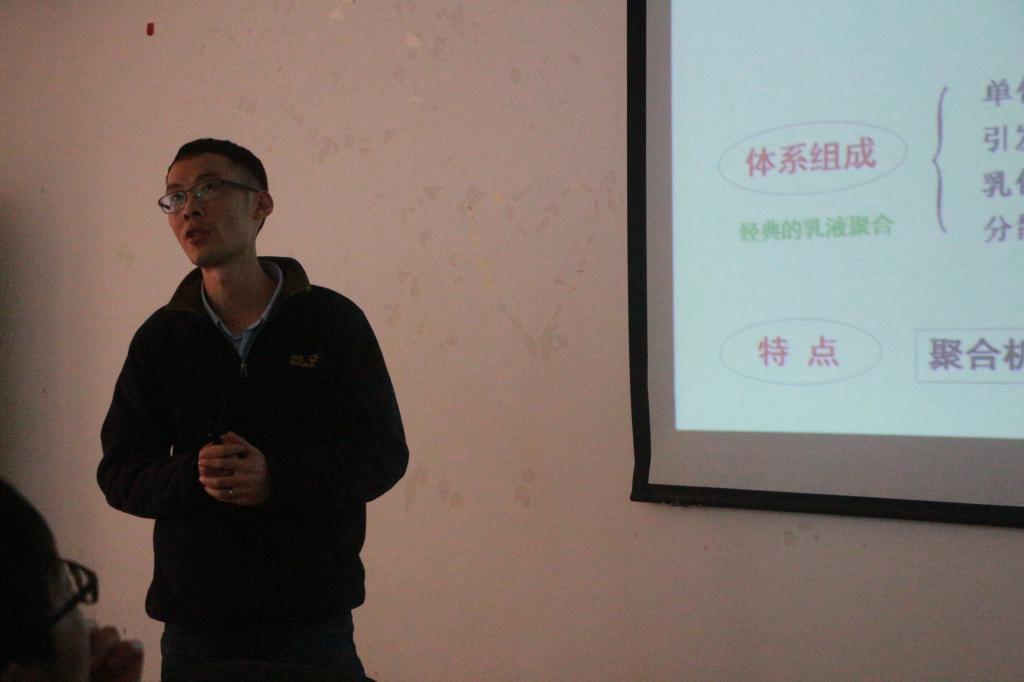 接下来由个参赛老师依次进行课堂展示。各参赛老师通过多媒体辅助教学进行二十分钟的课堂展示,并根据自己的教学情况进行板书展示。首先出场的是田甜老师,她讲授的是无机化学中的杂化轨道理论,为我们介绍了多原子分子的结构和几种杂化方式。紧接着是钟邦超老师的展示——高分子化学中四大聚合之一的乳液聚合。他介绍到乳液聚合于上世纪50年代开始工业化,主要应用于涂料、乳胶等的生产,并重点介绍了乳液聚合机理。接下来是祁文静老师展示的酸碱滴定法的应用——工业中混合碱的测定,包含了盐酸标准溶液的配制和标定、混合碱的滴定方法、用双指示剂法判断成分并求出组分含量等多个知识点。徐海老师展示的是芳香亲电取代反应,重点介绍了加成消除机理,其中涵盖了硝化反应、卤代反应、磺化反应、Friedel-Crafts反应等多种反应。最后是单春晖老师的展示,她以矩阵在密码学中的应用引出教学主题——可逆矩阵。富有创意的开讲,点燃了学生们思维的火花,让学生尽快把握思维中心,围绕可逆矩阵开动思维器官,积极思考,探微知幽。