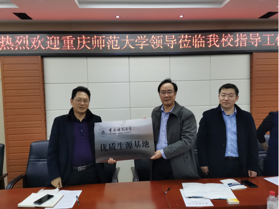 为了加强与重庆市丰都第二中学、长寿中学的进一步交流与合作,建立双方友好合作的长效机制,共同为国育才,签订了“重庆师范大学优质生源基地”协议并授牌。