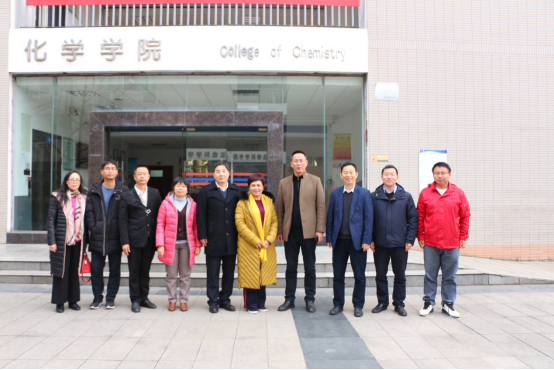 党委书记唐敏、院长付文升、副院长刘玺,教职工刘颜、胡连哲,海南师范大学化学与化工欢乐麻将