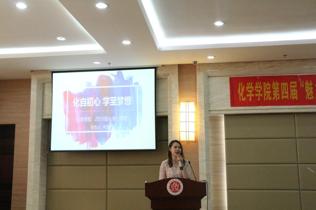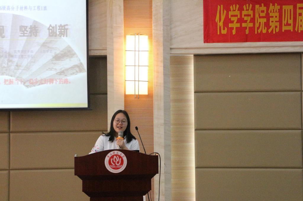 我们深切感受到老师们对大家的谆谆教导,我们细细聆听了化院三好学生、优秀学生干部和先进集体等给大家带来的事迹宣讲。“化之格物,学理修德”,化学是变化的学科,变化是许多事物联系的纽带,只有利用这些变化,才能让人类更加进步,才能亲密接触化学,感受化学魅力!