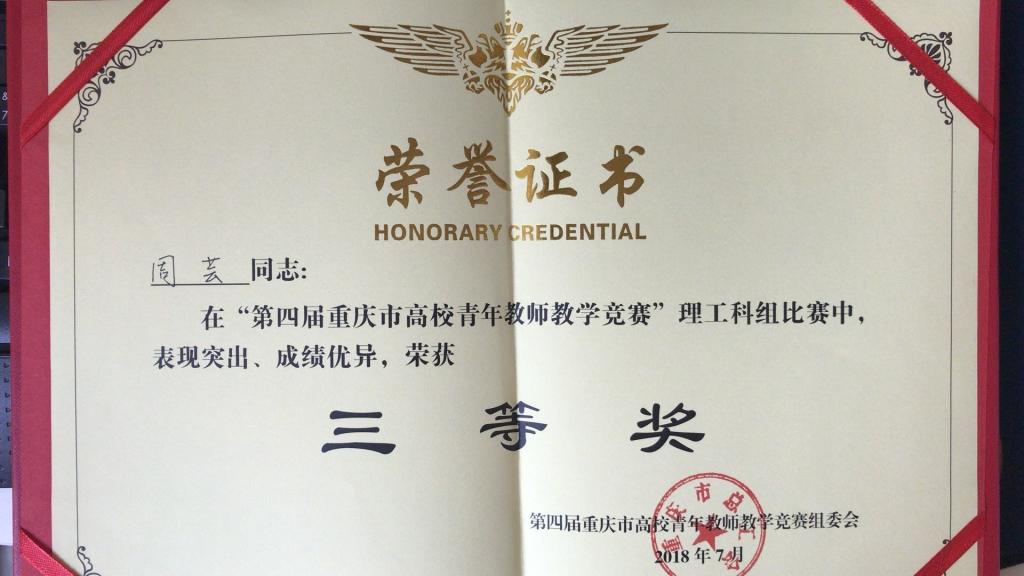 推荐的青年教师周芸、聂瑶、周琦、王燚分别获得了理工组的第1、3、5、8名,后经学校评审专家最终商议,决定推荐周芸老师作为学校参与第四届重庆市高校青年教师教学竞赛理工组的选手。