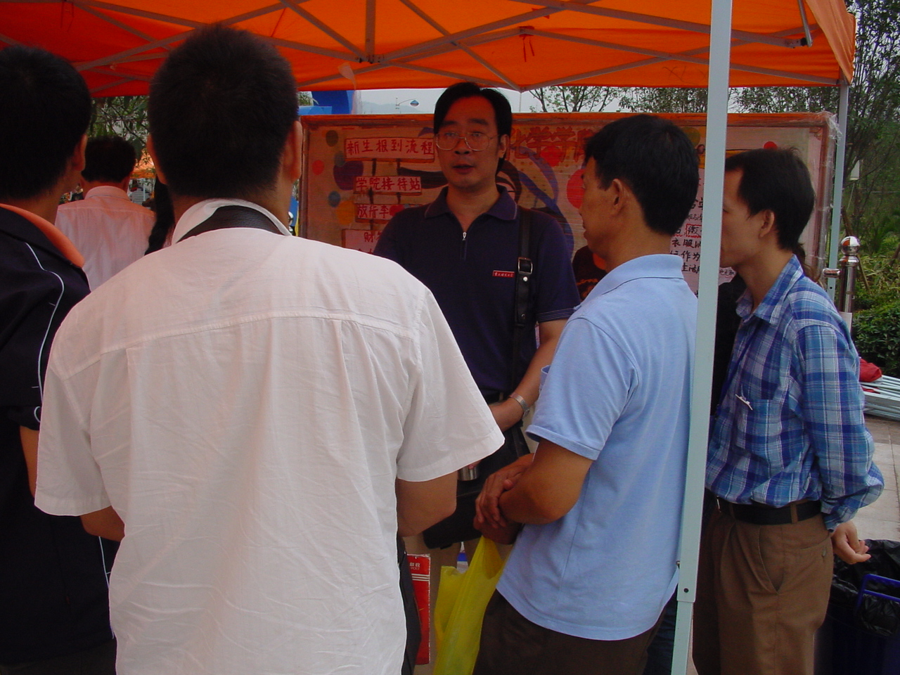 的接待站。在学长们热心帮助下,新同学的报名手续都进行得很顺利。学长们在带他们存行李、缴费、体检的同时,也不断叮嘱他们要注意财物的安全、军训期间要多注意身体,最后顺利地将他们送上去军营的校车。