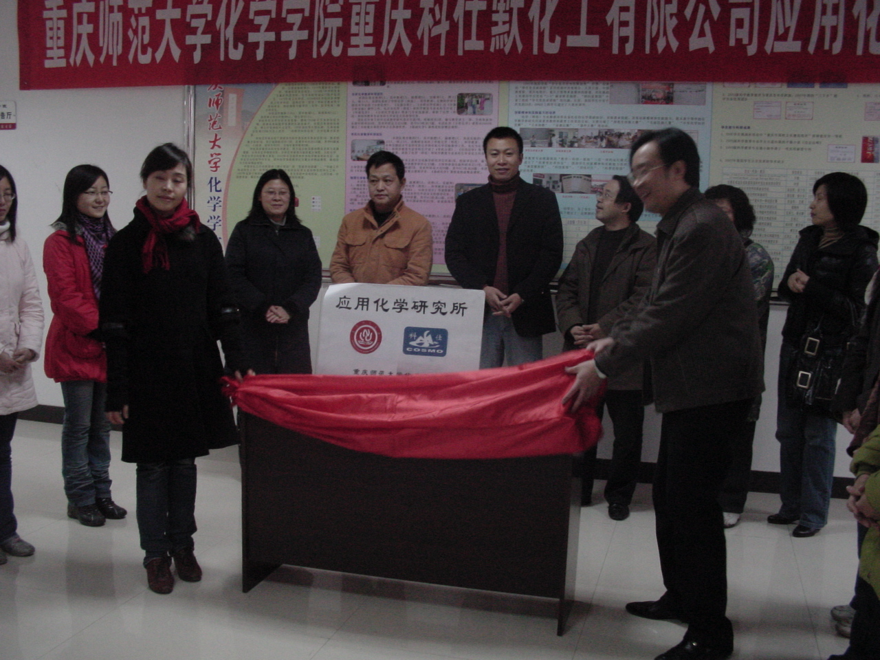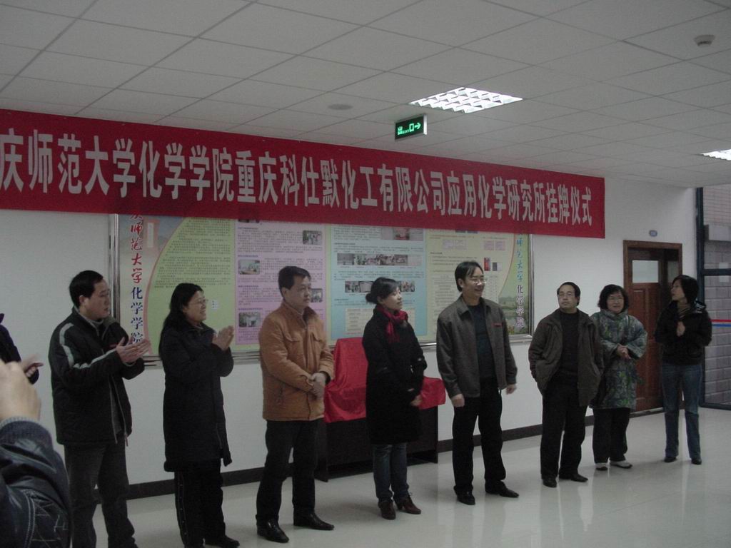 2009年1月6日下午,欢乐麻将(中国)唯一官方网站 重庆科仕默化工有限公司应用化学研究所挂牌仪式在欢乐麻将 一楼门厅举行。欢乐麻将 领导、重庆科仕默化工有限公司主要负责人以及欢乐麻将 部分师生参加了当天的挂牌仪式。欢乐麻将 与重庆科仕默化工有限公司的合作由来已久,自2003年以来,欢乐麻将 就与该公司建立起合作关系,每年都选派部分学生过去实习和就业,应用化学研究所的成立标志着双方的合作关系进一步正规化、广泛化,也为欢乐麻将 开创了高校与社会共同进行科研、产品市场开发的先河。