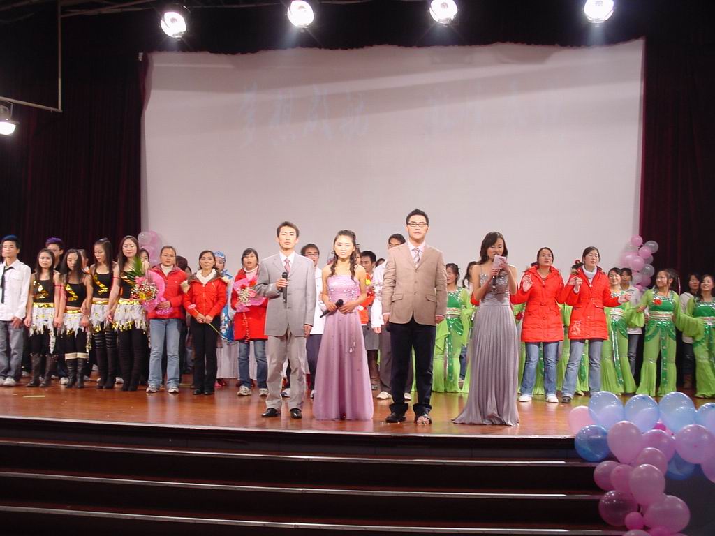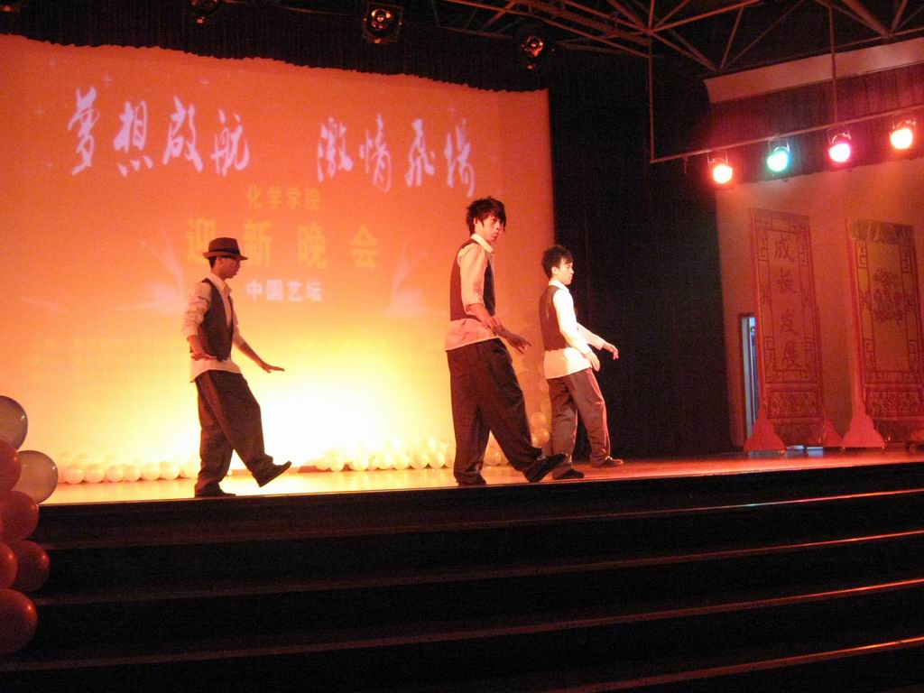 带来的《机械舞》更是技惊四座;接下来的小品《我的大学》、配乐诗朗诵《似水流年》、现代版话剧《唐伯虎点秋香》、黄梅戏《女驸马》、手语剧《和你一样》……节目一个比一个精彩;随后,07级同学匠心独运的《服装秀》将晚会推向了高潮。整场晚会融合了青春与激扬、古典与优雅、豪放与婉约,节目精彩纷呈,晚会高潮迭起,激起了台下观众们的高声喝彩。晚会持续了近三个小时,最后在一首大合唱《雄心飞扬》中圆满结束。
