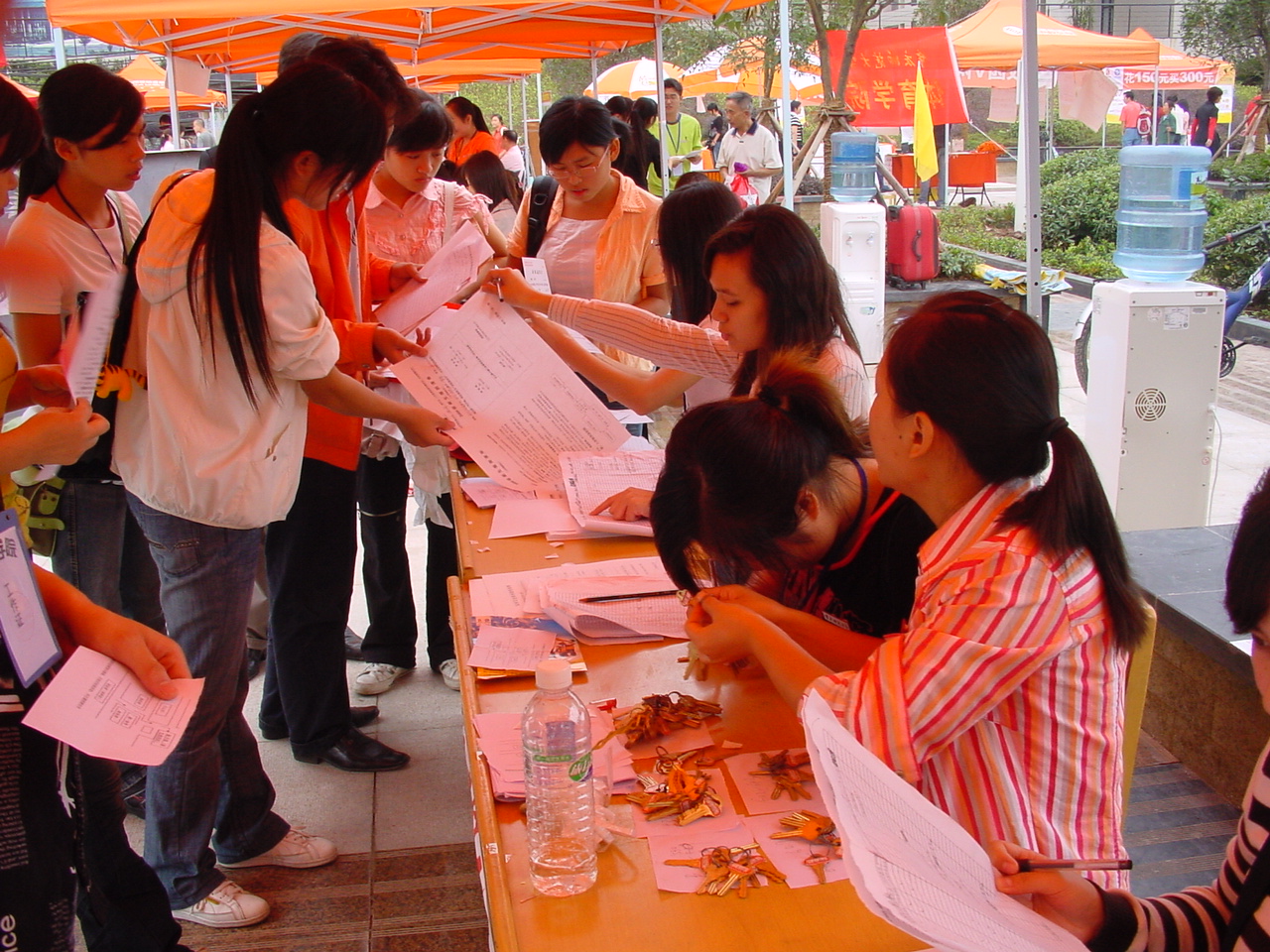 的工作在值班老师的指导下有条不紊地开展。不料天公不作美,下起了倾盆大雨,这为我们的“迎新”工作增加了不少难度,也给新同学和家长带来了诸多不便。与往年“迎新”工作不一样的地方是,今年,我们在新生接待处专门开设了一个家长休息区,在此,家长们除了可以遮风挡雨和歇息外,还可以通过海报等方式了解到学校、欢乐麻将