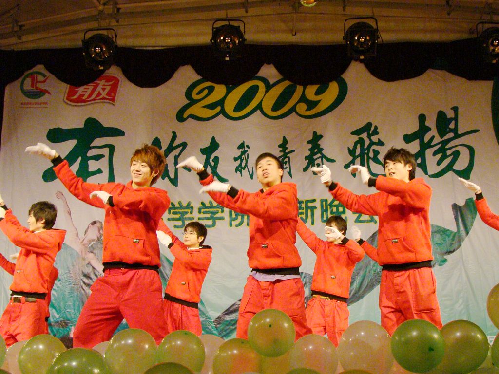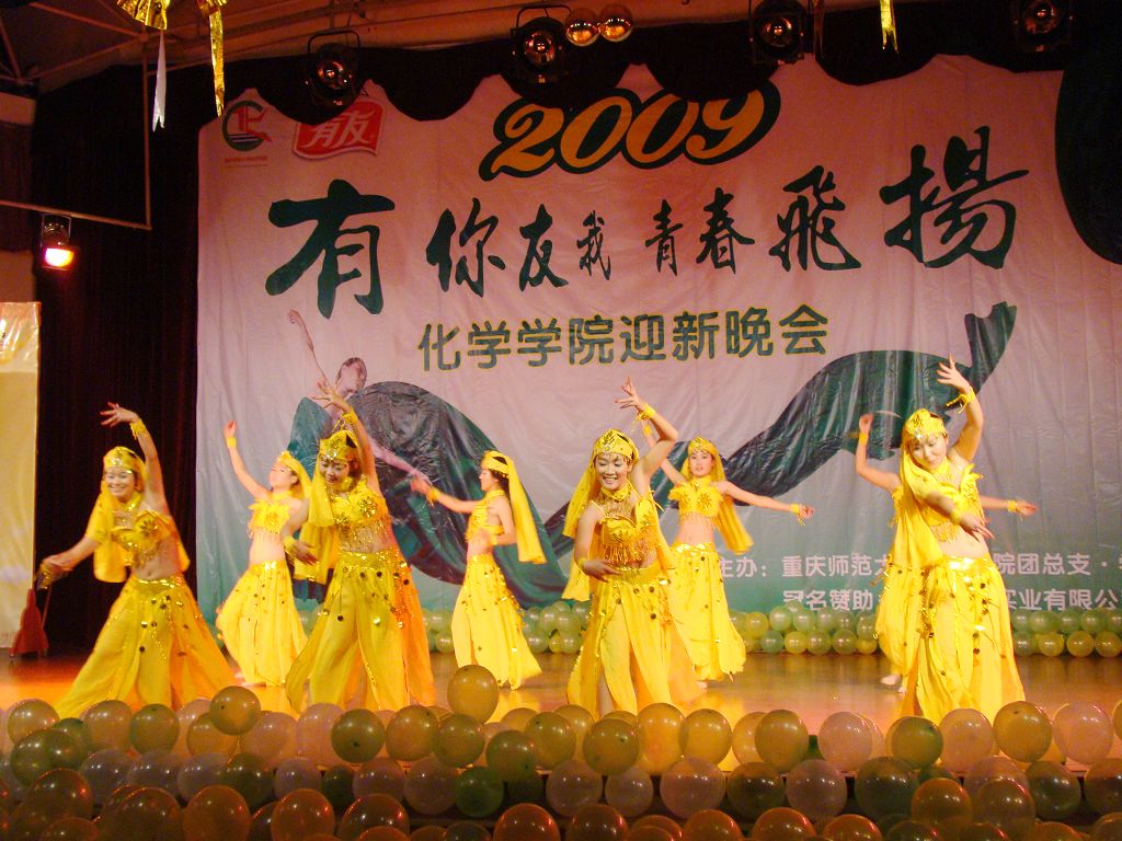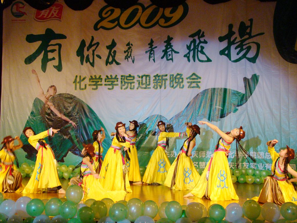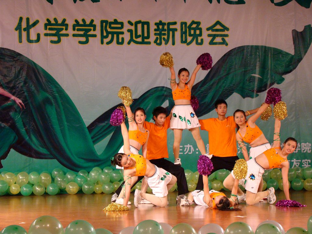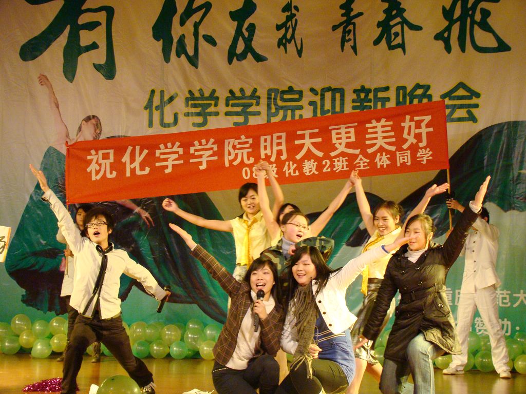 首先,一段活力四射的《啦啦操》拉开了本次晚会的帷幕,小品《迎新集结号》带我们重温了难忘的军训岁月,精彩的武术表演雄浑刚劲,现代舞《电话情缘》激情奔放,而印度舞《西域风情》、藏族舞《溜溜的康定溜溜的情》以及新疆舞《掀起你的盖头来》则将民族风情展现得淋漓尽致,F.C.B工作室的街舞更是热力四射。晚会中,不仅歌舞表演十分精彩,其他节目更是令在场的观众耳目一新,以蚊帐为材质自主剪裁的《服装秀》、乡村模特秀《那村,那人,那岁月》,无不体现了化学学子别出心裁的无限创意。在今年的晚会中,还增加了现场抽奖和师生互动环节,这不仅活跃了晚会的气氛,还增进了师生间的友谊。最后,舞台剧《我们的幸福生活》为本次晚会画上了圆满的句号,全场齐唱《歌唱祖国》将晚会推向了最后一个高潮。
