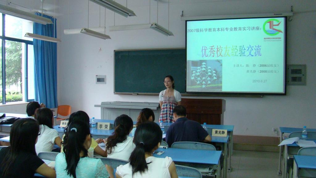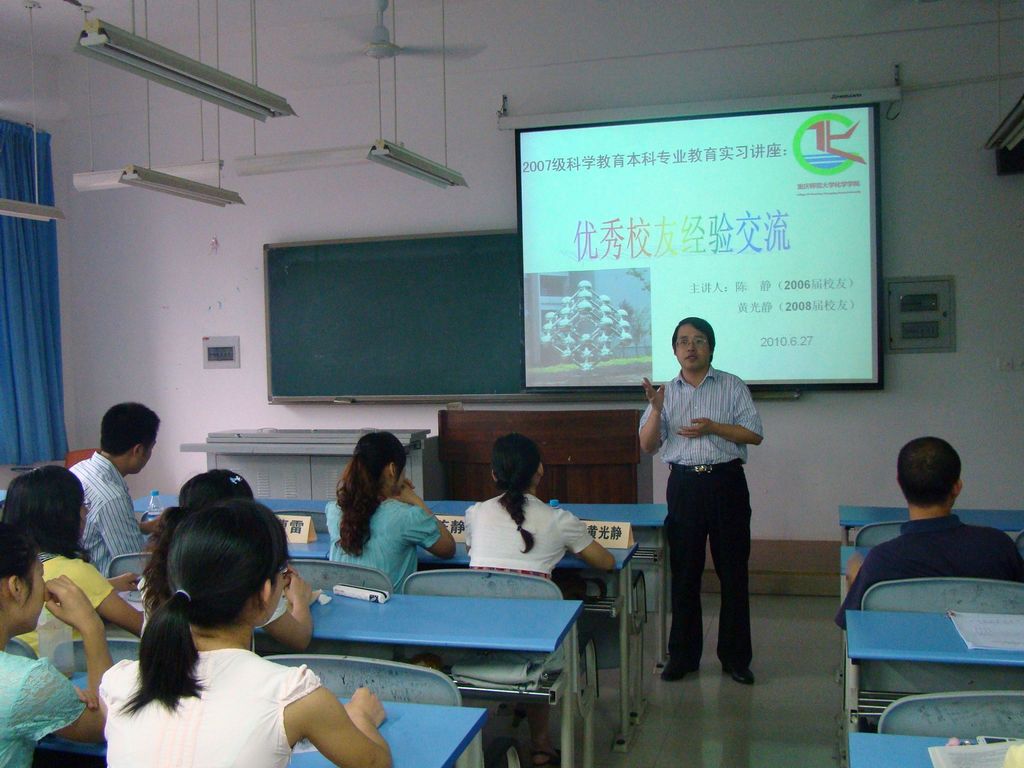 06、08届科学教育本科专业优秀毕业生陈静和黄光静做主讲嘉宾,本次讲座由科学教育本科专业负责人林长春教授担任主持,欢乐麻将