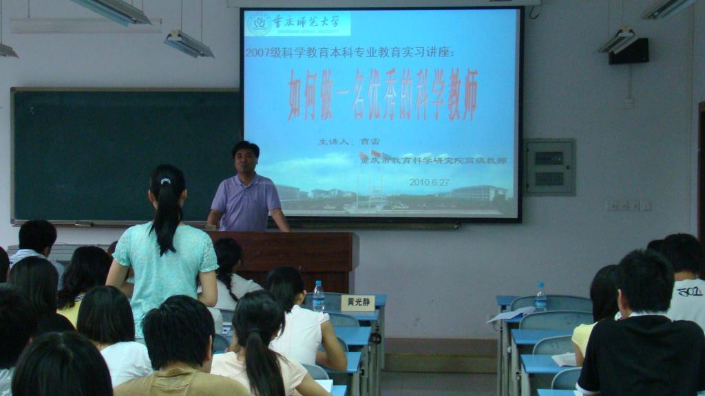 在13101教室特意举办了一场教育实习讲座。讲座邀请了重庆市教育科学研究院高级教师曹雷老师以及欢乐麻将