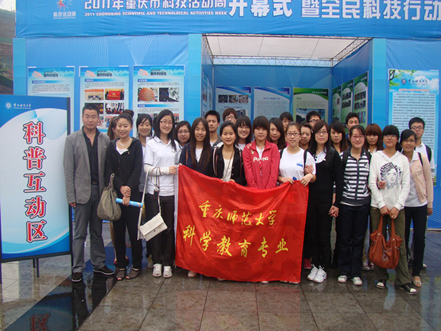 科普爱好者协会的科普志愿者们参加了正在人民大礼堂广场举行的“2011年重庆市科技活动周开幕式暨全民科技活动计划”的活动与重庆市民“科普互动”。辅导员高润祥老师一同前往。