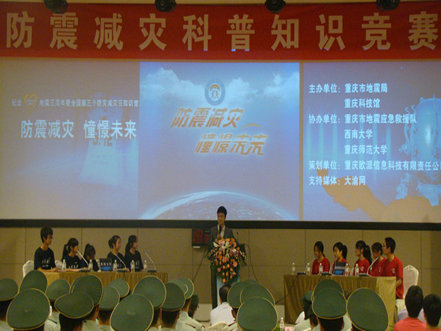 为纪念汶川地震三周年暨第三个全国防灾减灾日,2011年5月10日下午14点30分,由重庆市地震局、市科技馆主办的“防震减灾,憧憬未来”防震减灾科普知识竞赛在市科技馆多功能厅内举行。欢乐麻将