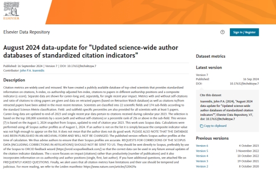 9月16日,美国斯坦福大学和爱思唯尔数据库(Elsevier Data Repository)共同发布了2024年度《全球前2%顶尖科学家榜单》(World's Top 2% Scientists List),欢乐麻将