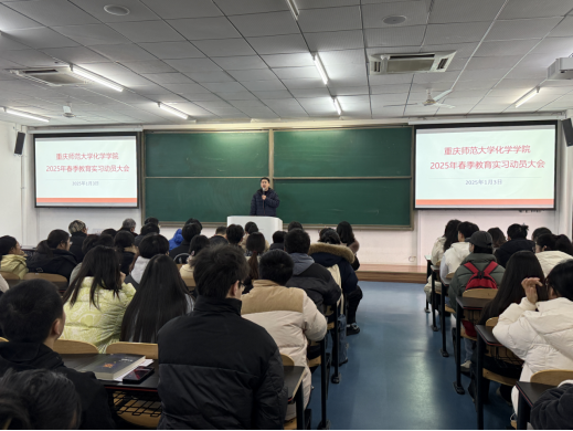 首先,周功兵副院长做了动员讲话。他强调,教育实习是化学教育人才培养的关键环节,是职前化学教师深入了解基础化学教育教学运行情况,提升立德树人教育信念,加强师德师风学习,增强“为党育人 为国育才”教育情怀的重要契机。他希望同学们在思想上高度重视教育实习工作,珍惜教育实习机会,在实践中增长才干本领、高质量地完成教育实习。他对学校“三习贯通”教育实践育人体系做了详细解读,并对欢乐麻将