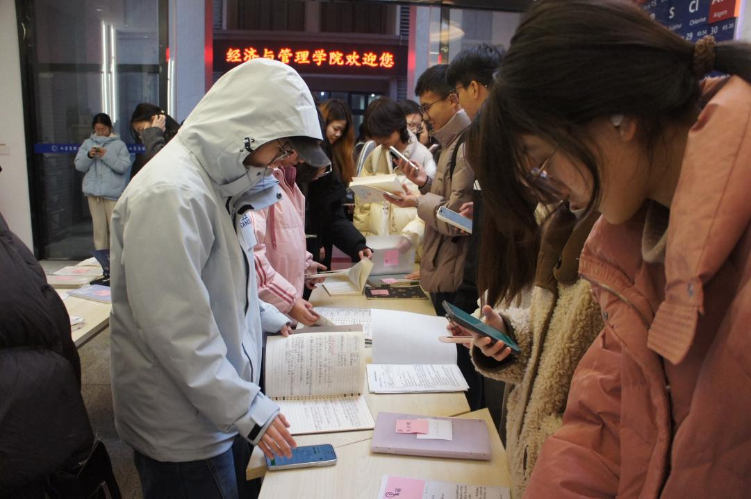 展览也引发了观展同学的热烈反响。大家或驻足细读,或拍照记录,或低声讨论。同学们纷纷表示:“看到学长学姐们条理清晰、内容详实的笔记,很受鼓舞。这不仅是知识的整理,更是学习方法的示范,提醒我要更注重平时积累与总结反思。”