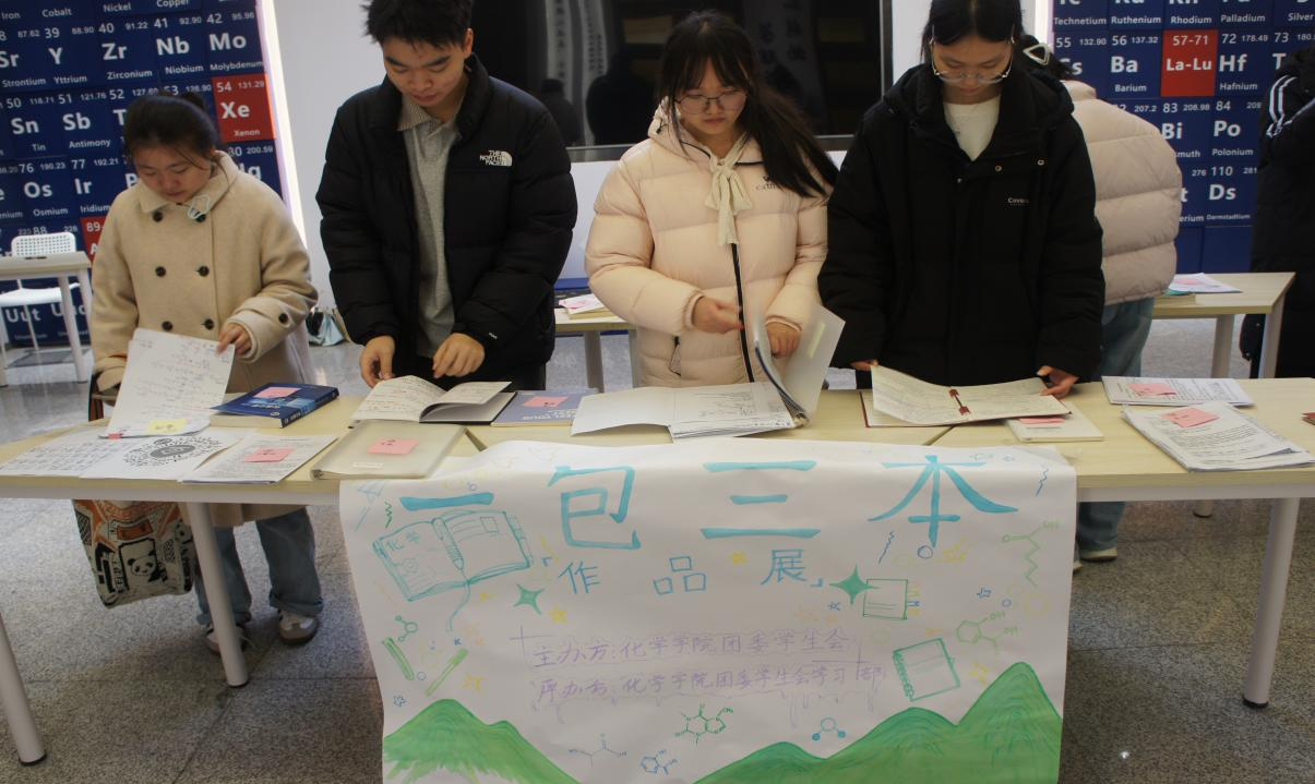 “一包三本”,即书包、实验报告、笔记本与课本,这些不仅是化院学子日常学习的忠实伙伴,更是他们求学路上思考轨迹与成长印记的载体。本次展览汇集了各年级推选的优秀笔记与学习成果,作品字迹工整、图表规范、重点突出、构思巧妙,充分体现了同学们在化学专业学习中的专注态度、逻辑思维与创新能力。
